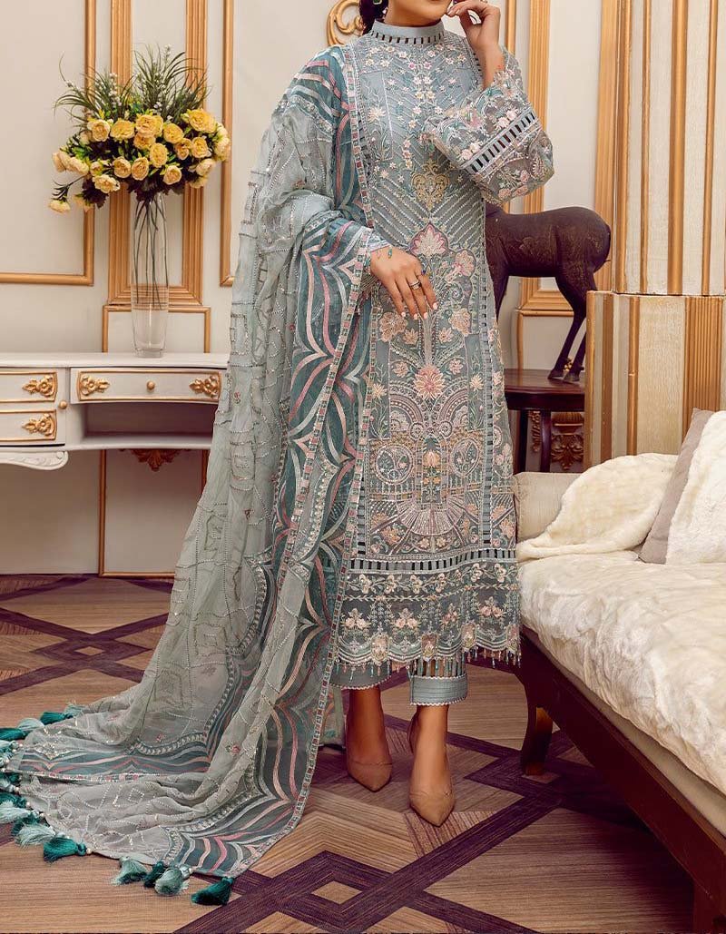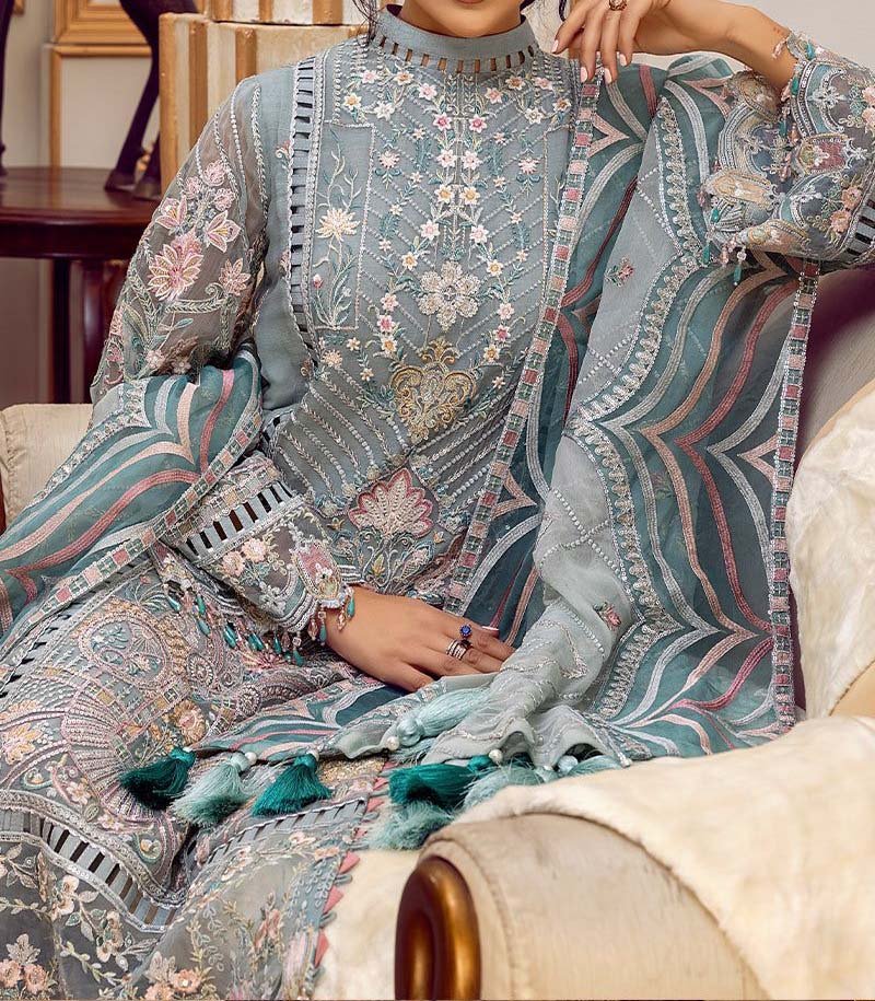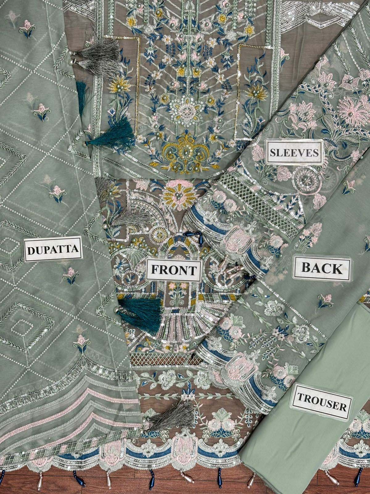 ▪Fully Heavy Embroidery Chiffon Front With pearls Work