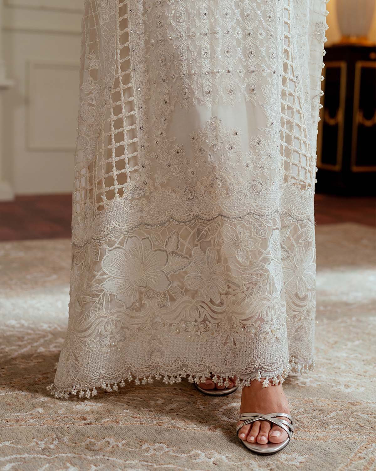 Embroidered organza trouser border