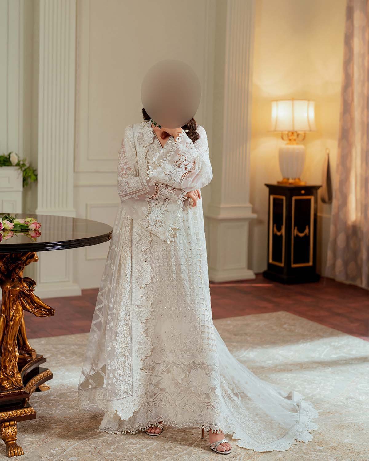 Embroidered handmade chiffon front panel