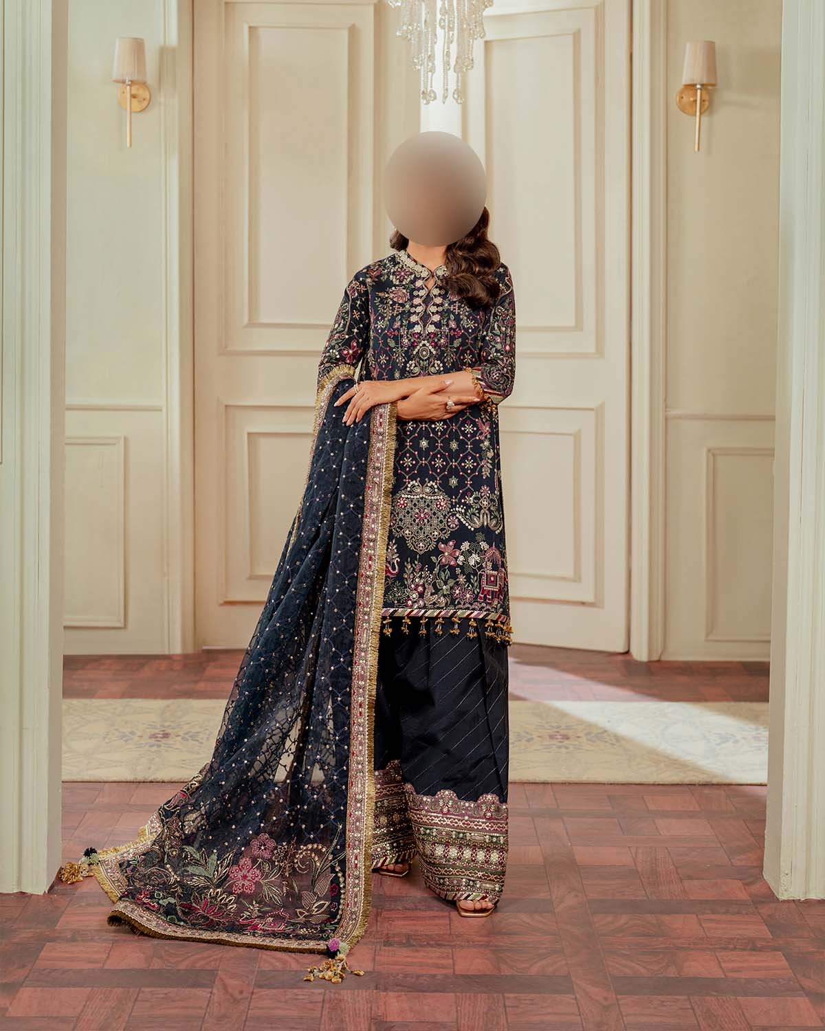 • Fully embroidered spengle work sleeves with refined embroidered sleeve borders for a statement look