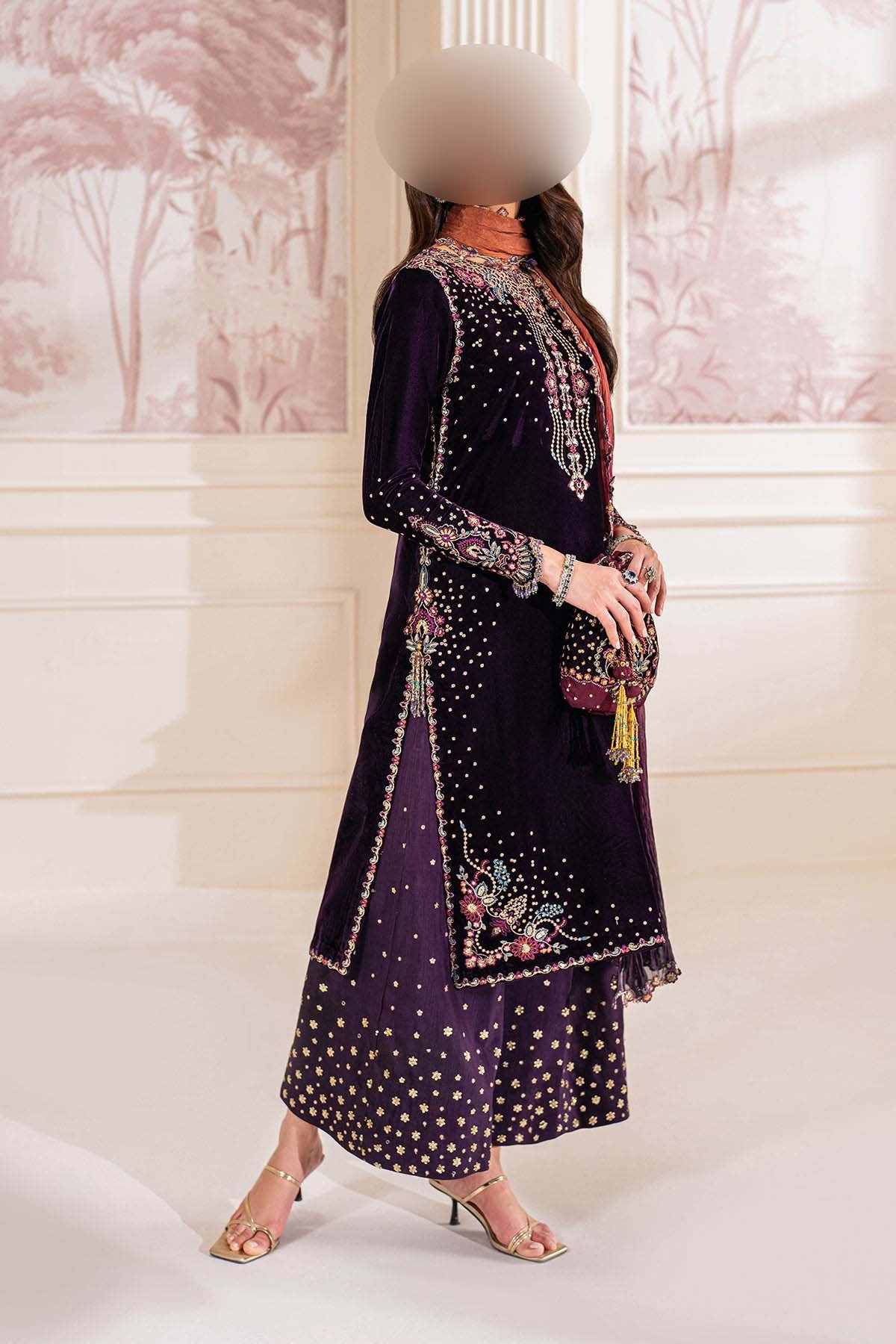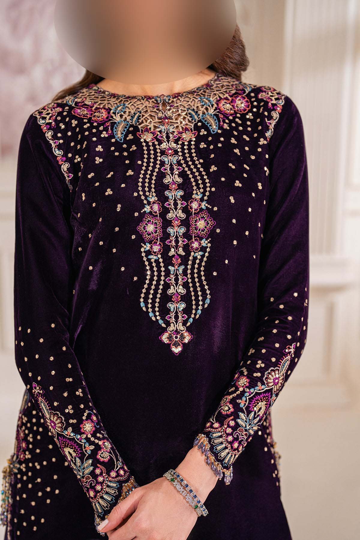 Baroque Luxury Micro Velvet Suit in Dark Purple with Chunri Dupatta BQ206