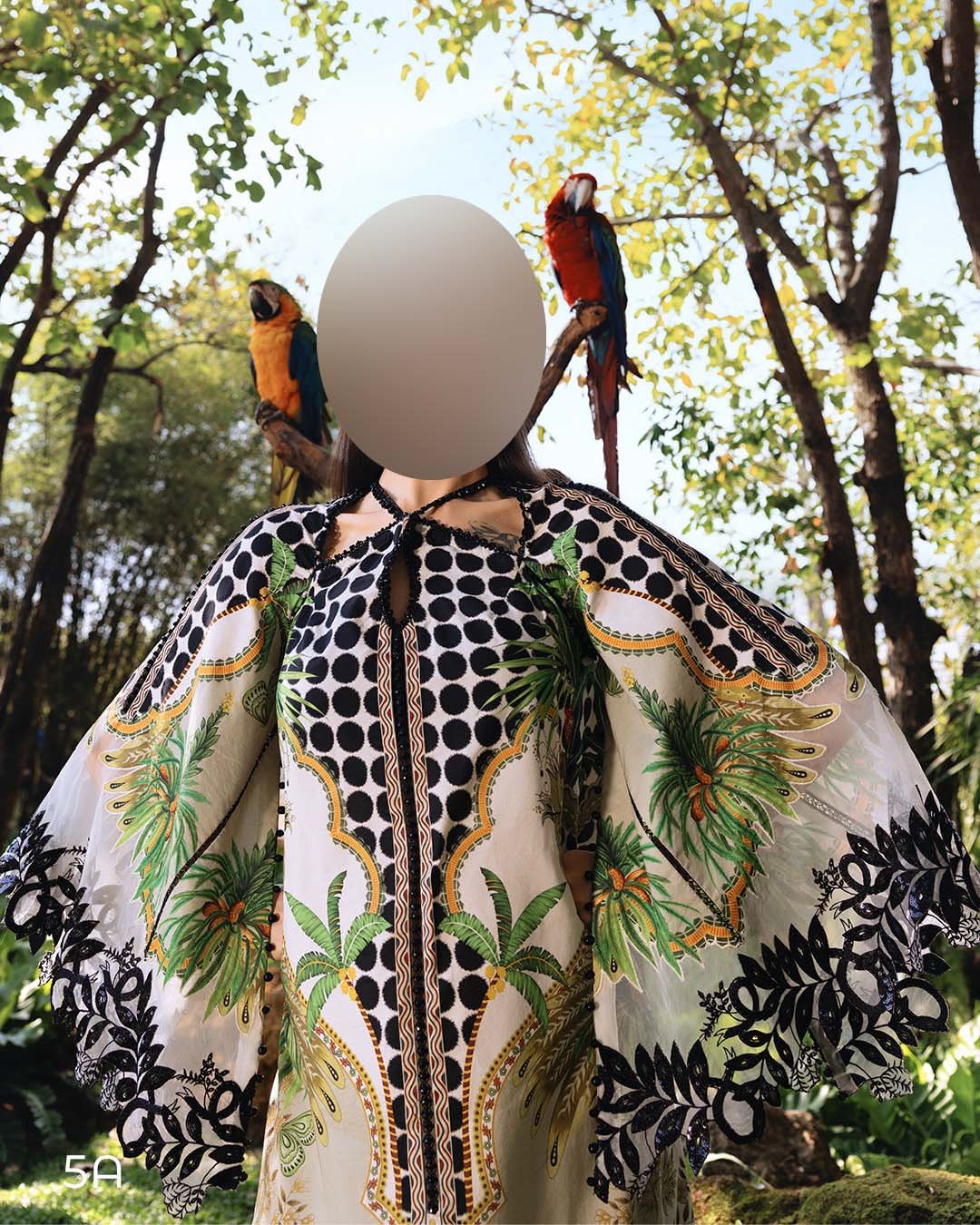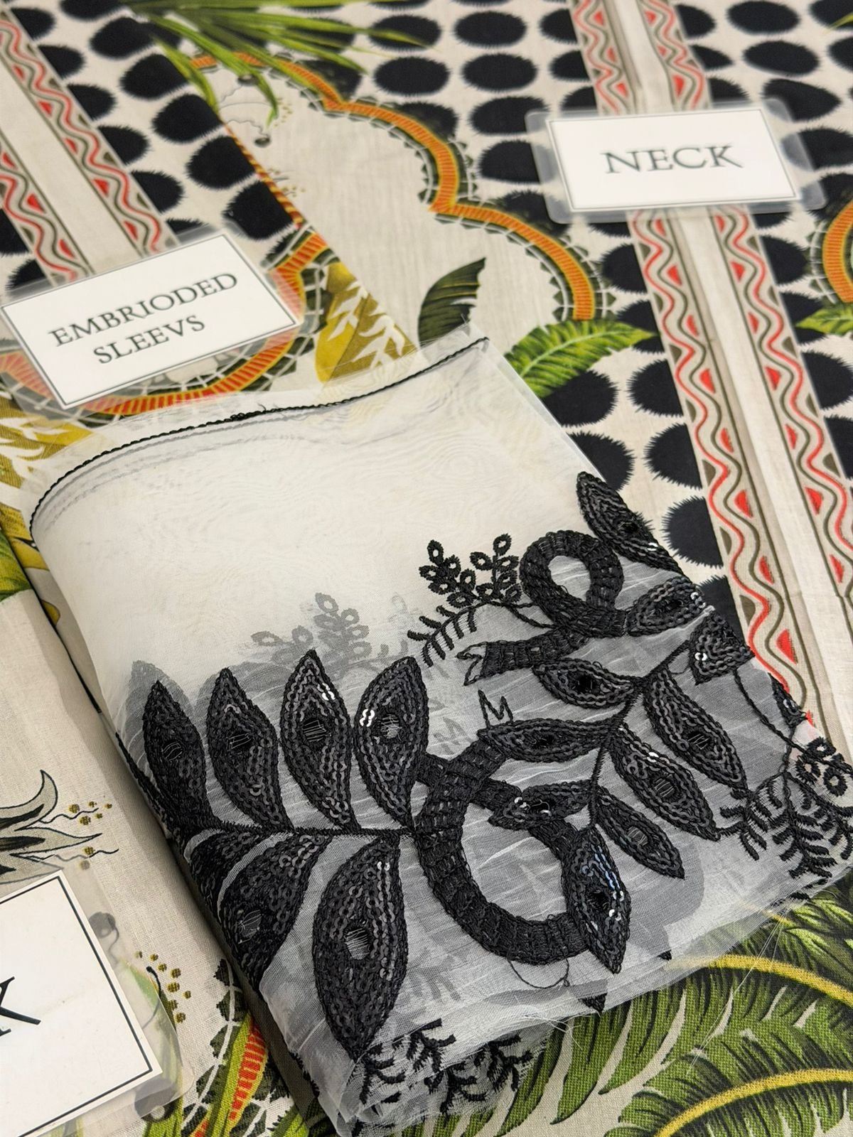 • Printed lawn sleeves adorned with heavy sequin embroidered borders