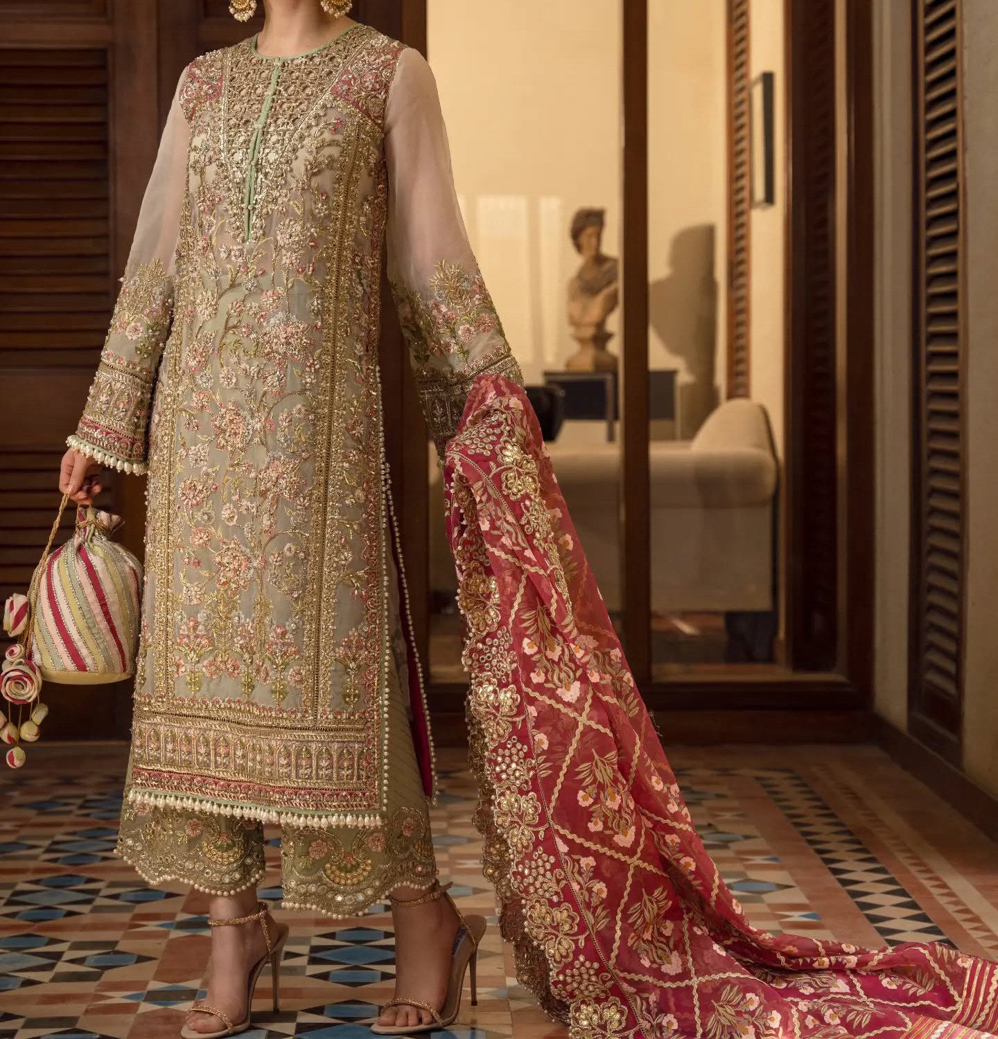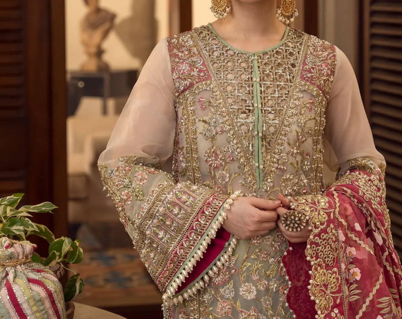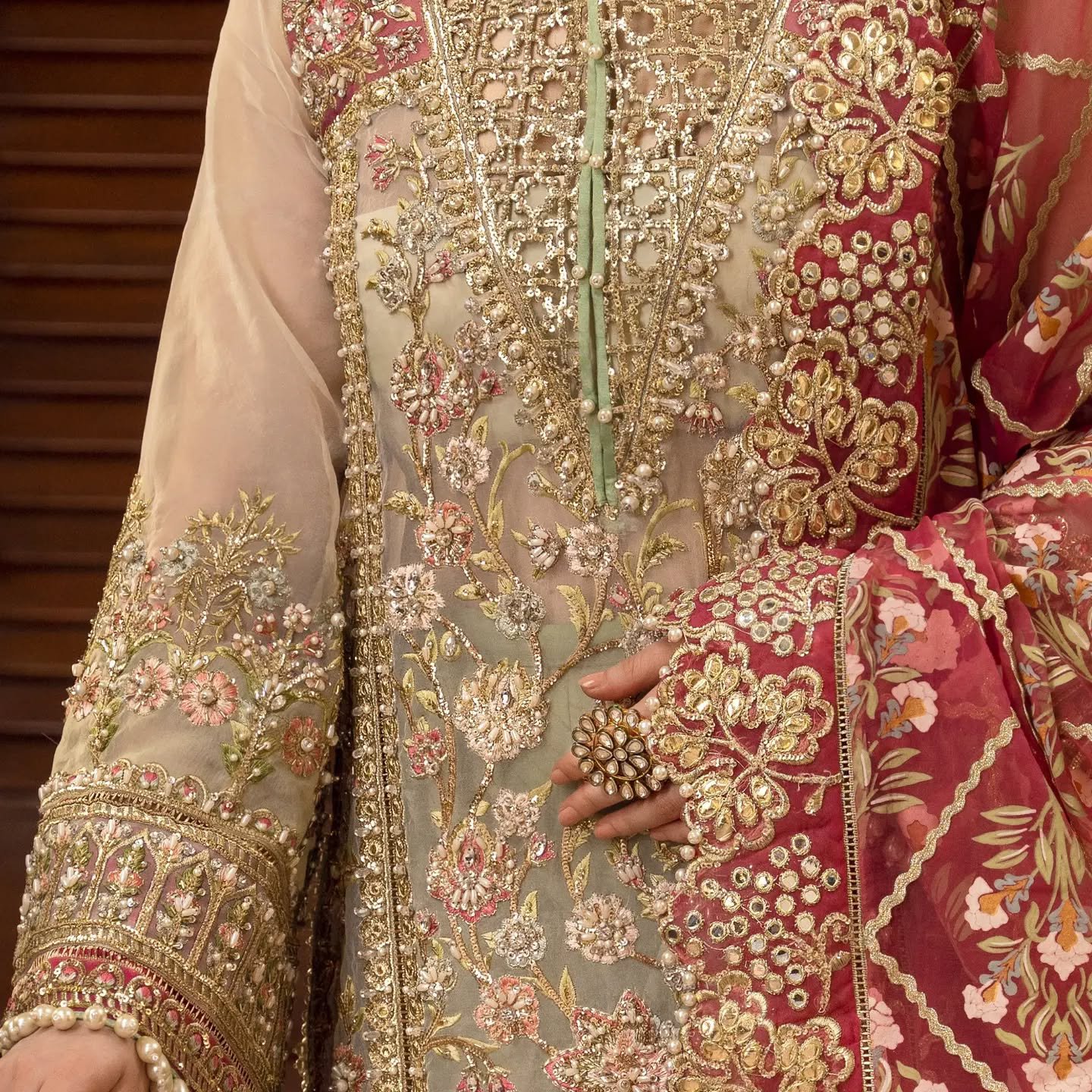 • Organza sleeves fully embroidered with adda work (extra measurements included)