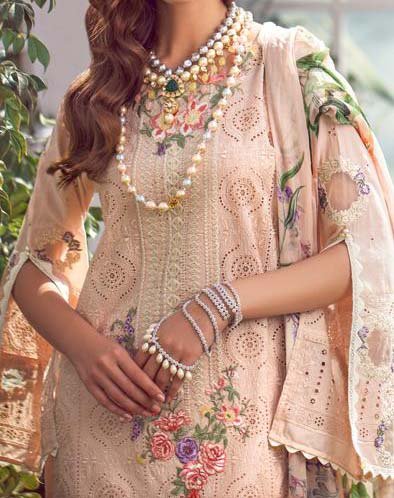Back embroidered With Schiffli Embroidered Daman On Fabric