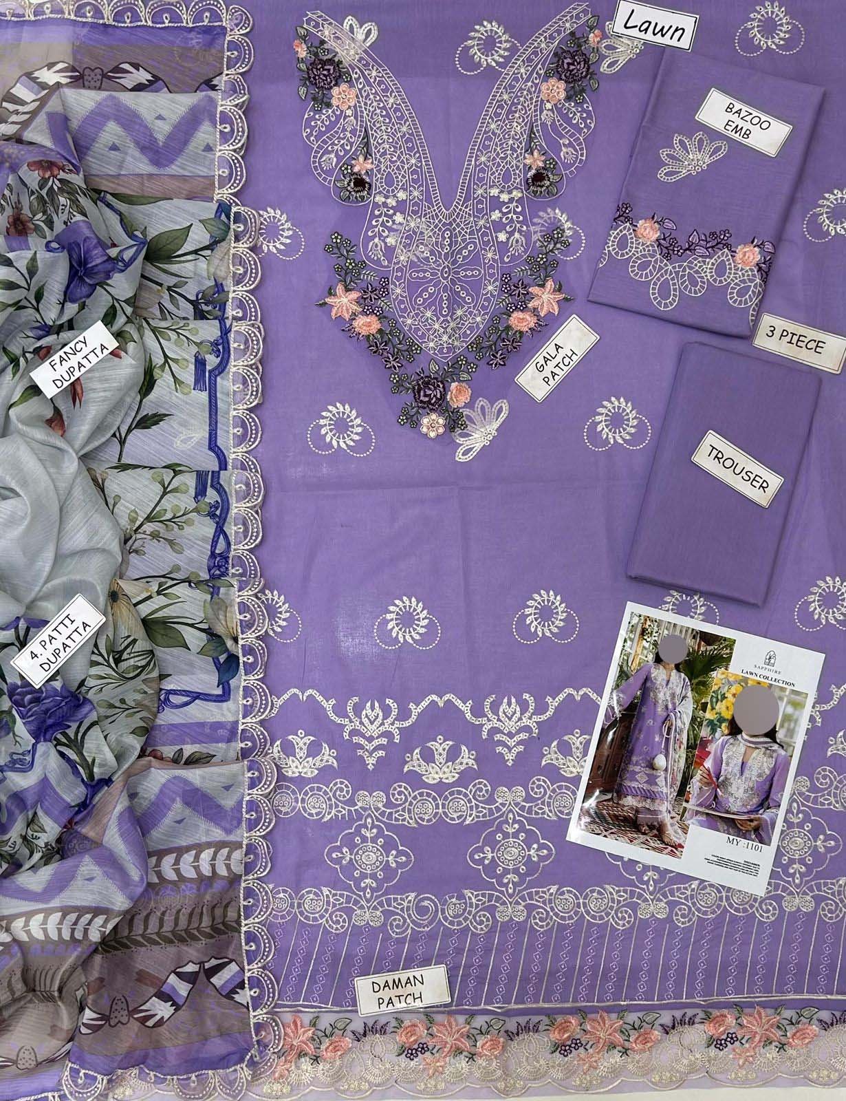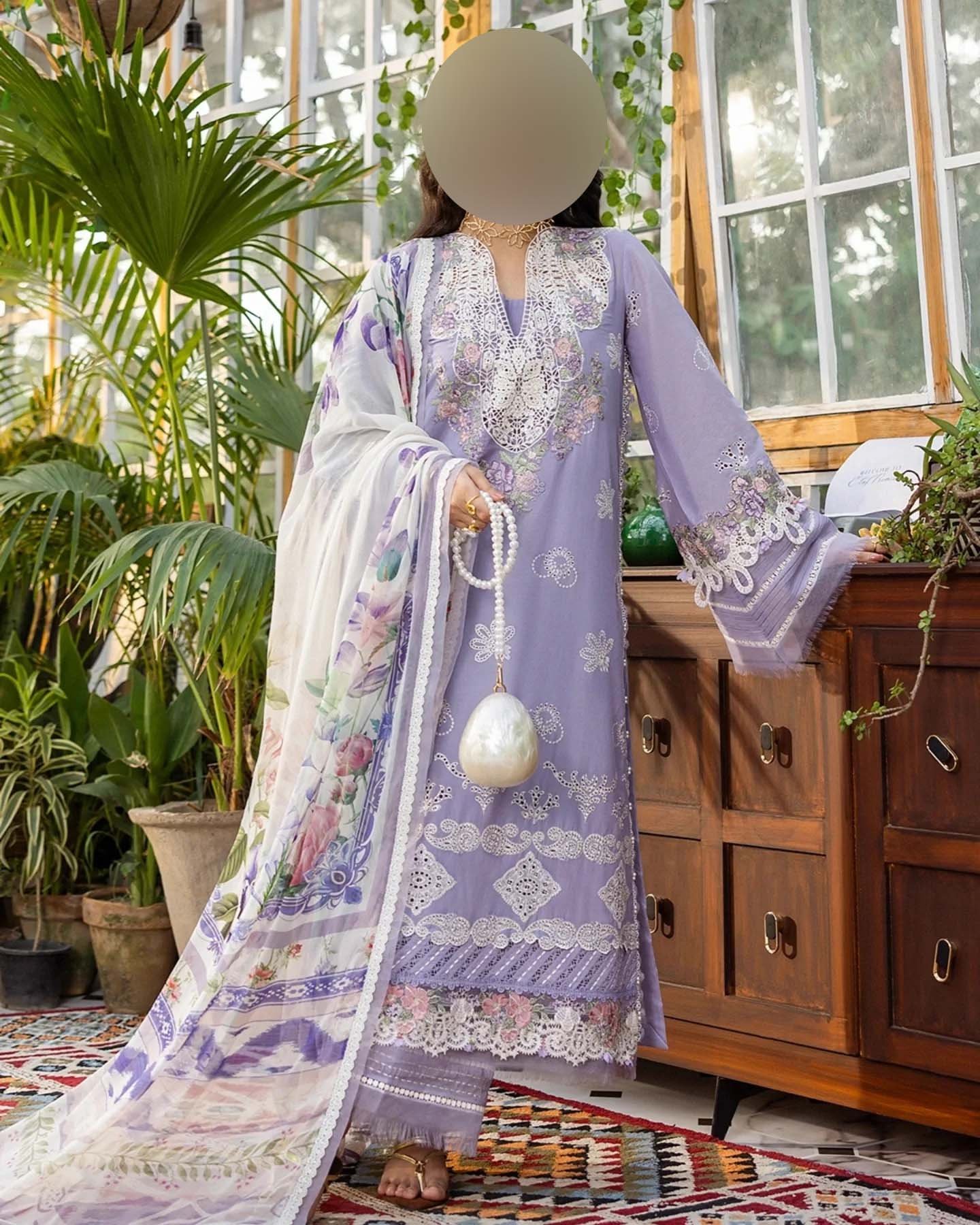 • Unstitched 3-piece suit (Shirt, Dupatta, Trouser)