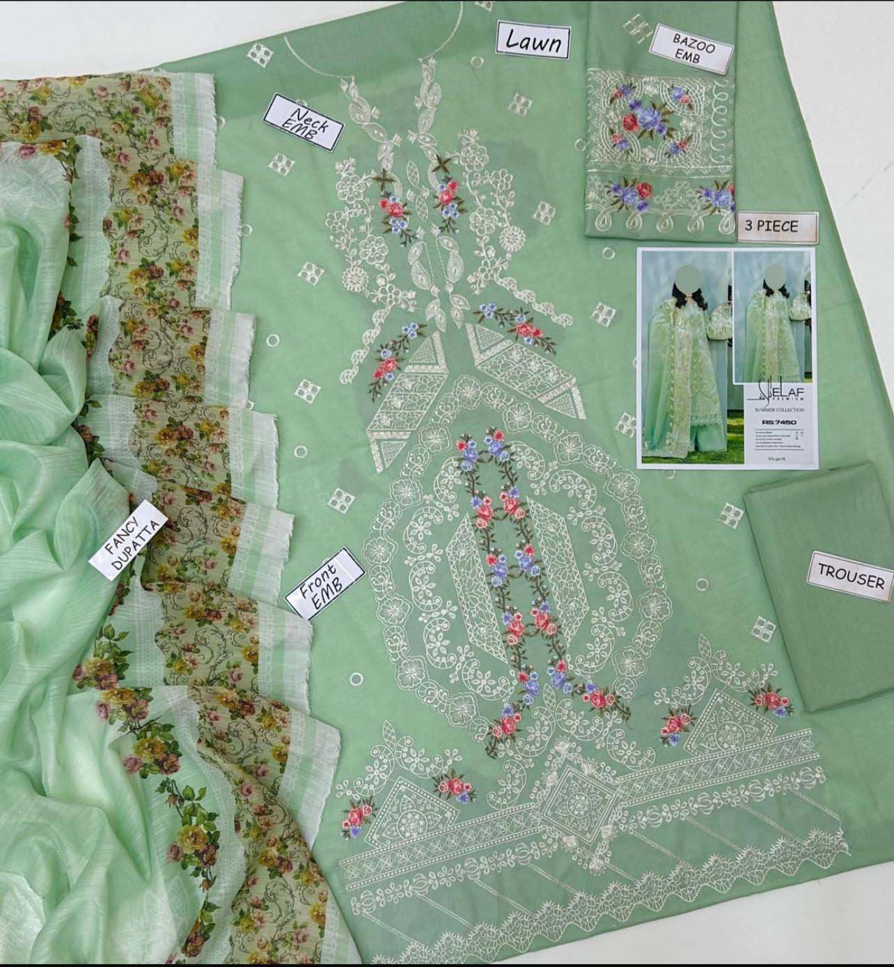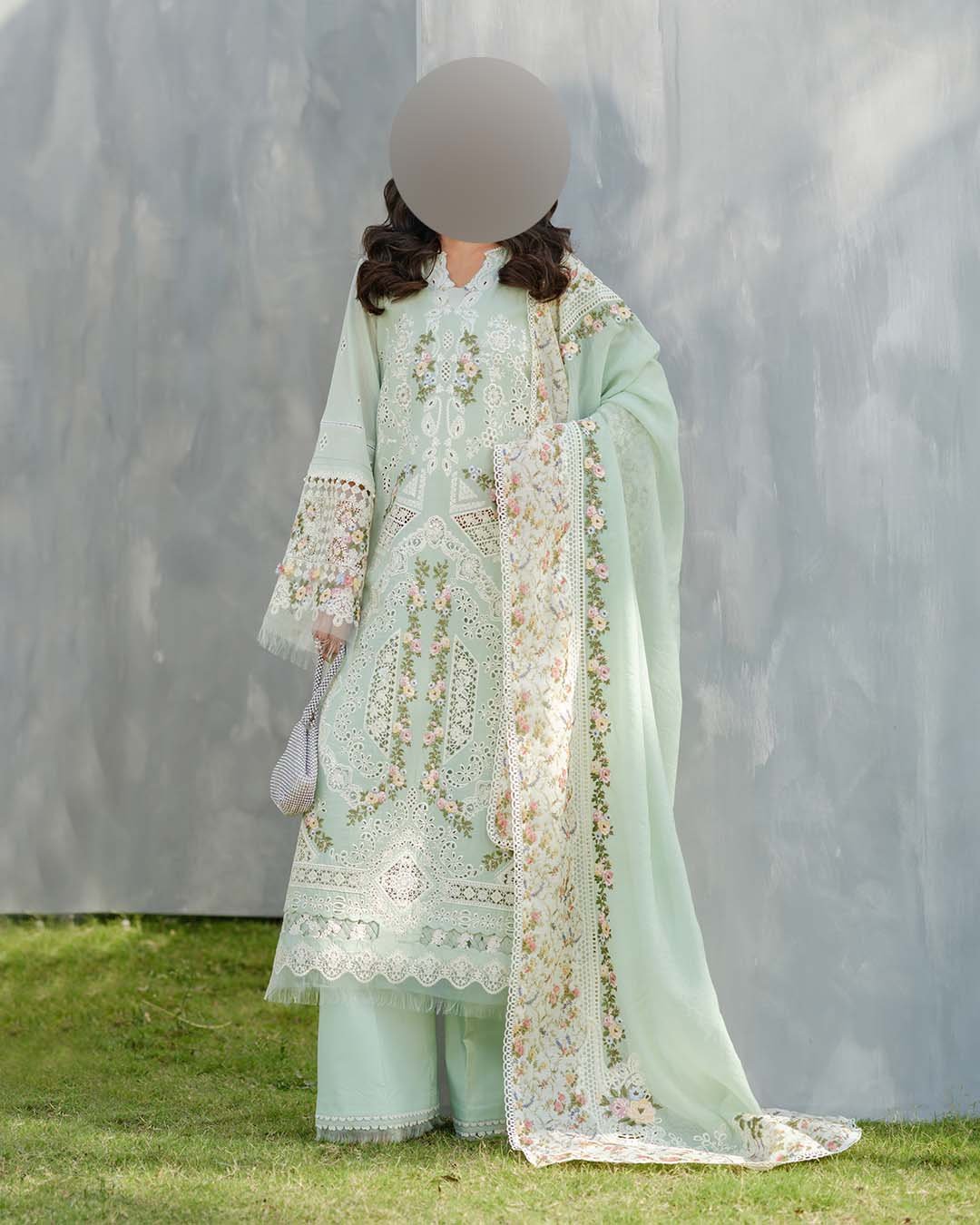 • Unstitched 3-piece suit (Shirt, Dupatta, Trouser)