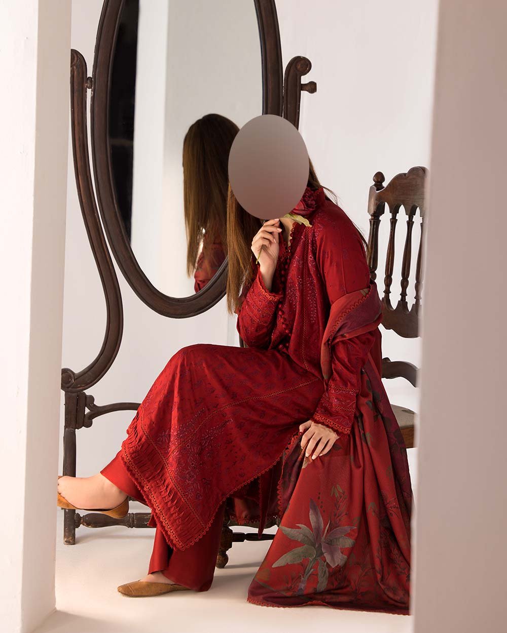 • Luxury embroidered 3-piece suit in premium 90/70 Airjet lawn