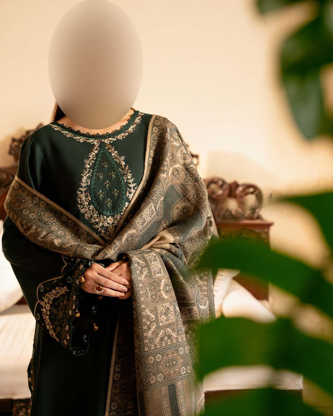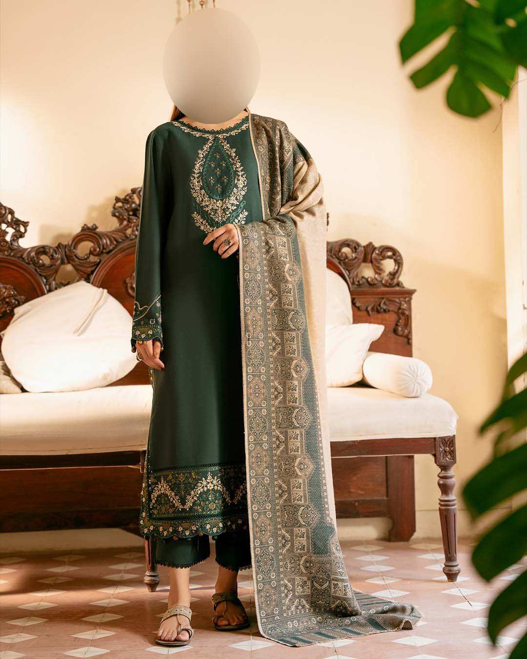 • Finely embroidered border for a graceful winter finish
