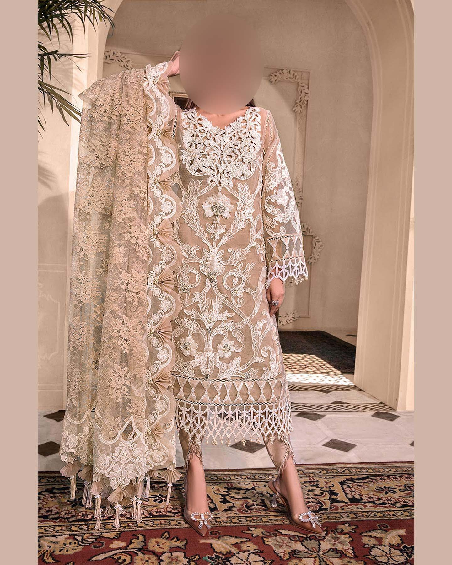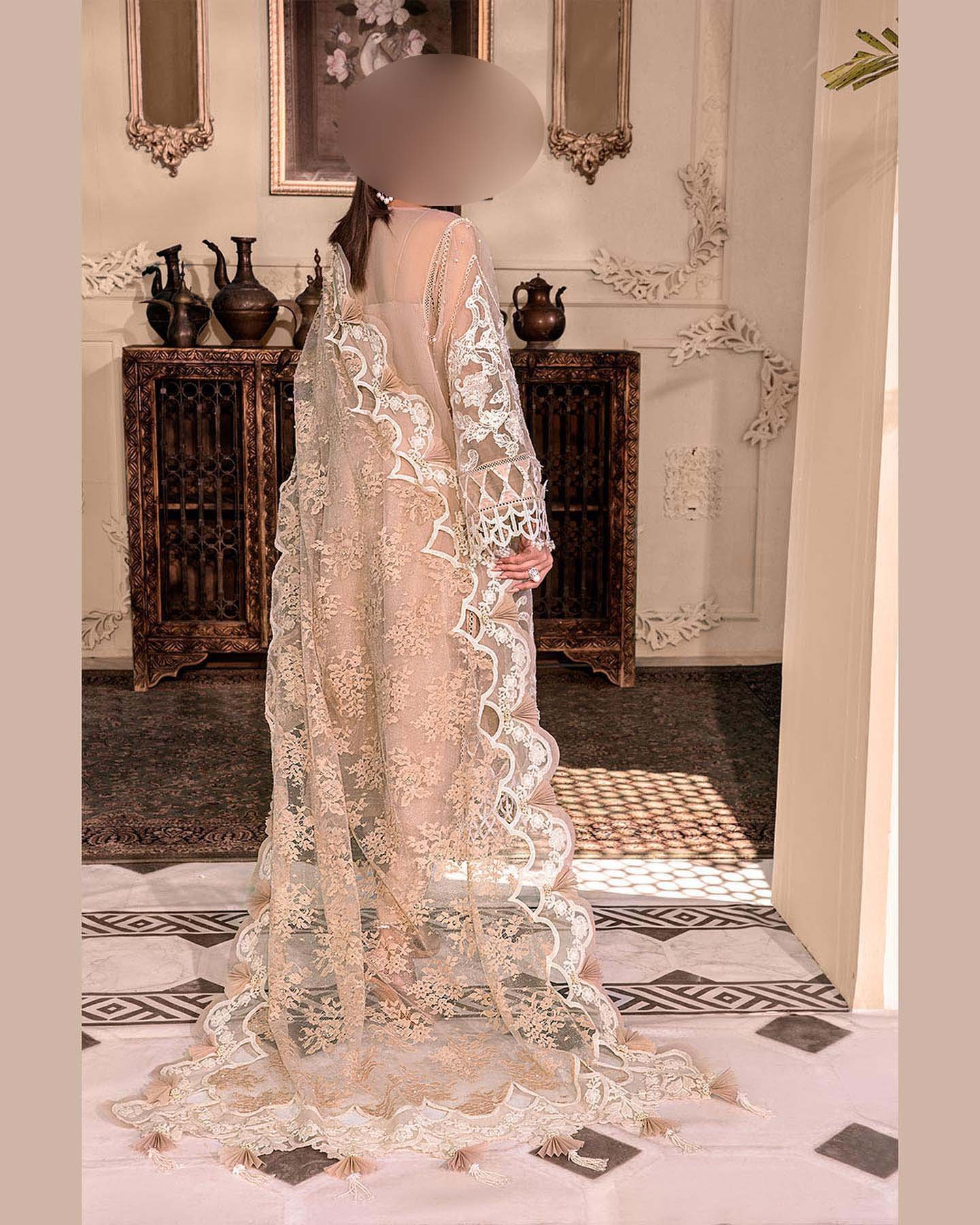 • Organza fully heavy embroidered spangle work dupatta with heavy 3D flowers, cutwork, and two-sided heavy embroidered spangle work pallu borders