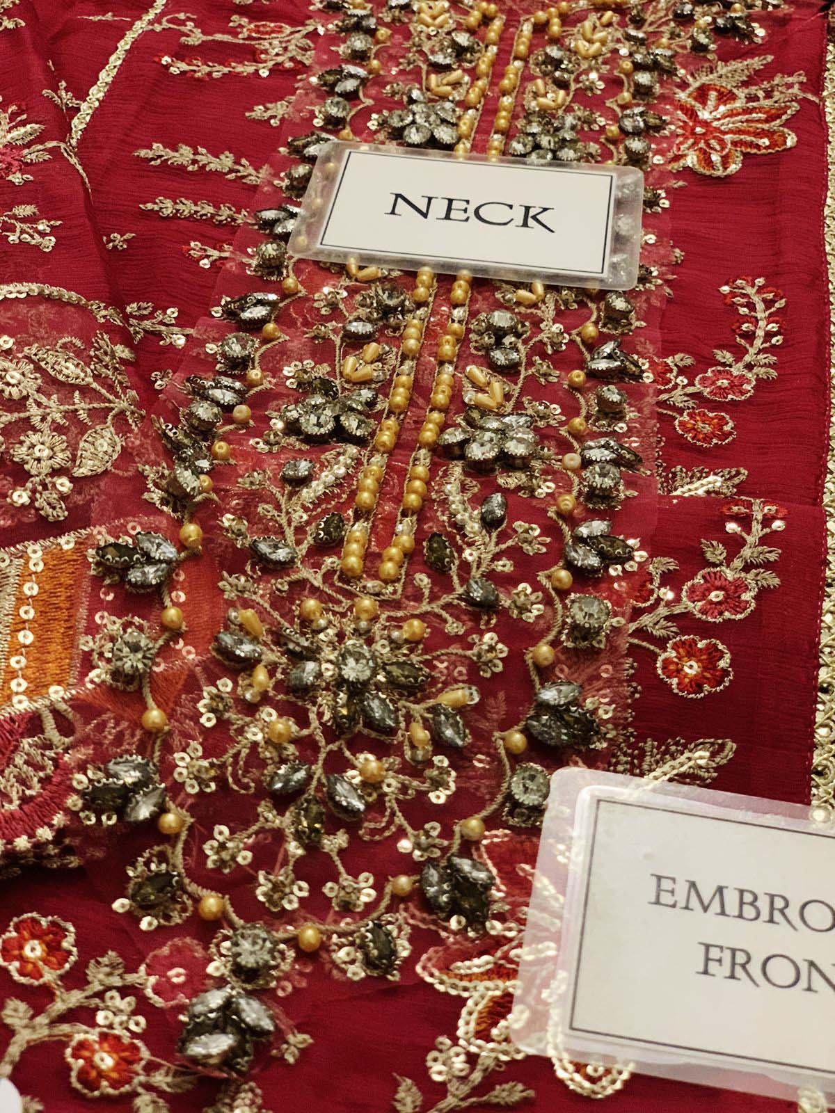 Maria B Semi Pure Chiffon Suit with Heavy Spangle Embroidery & Adda Hand Embellishment MB190