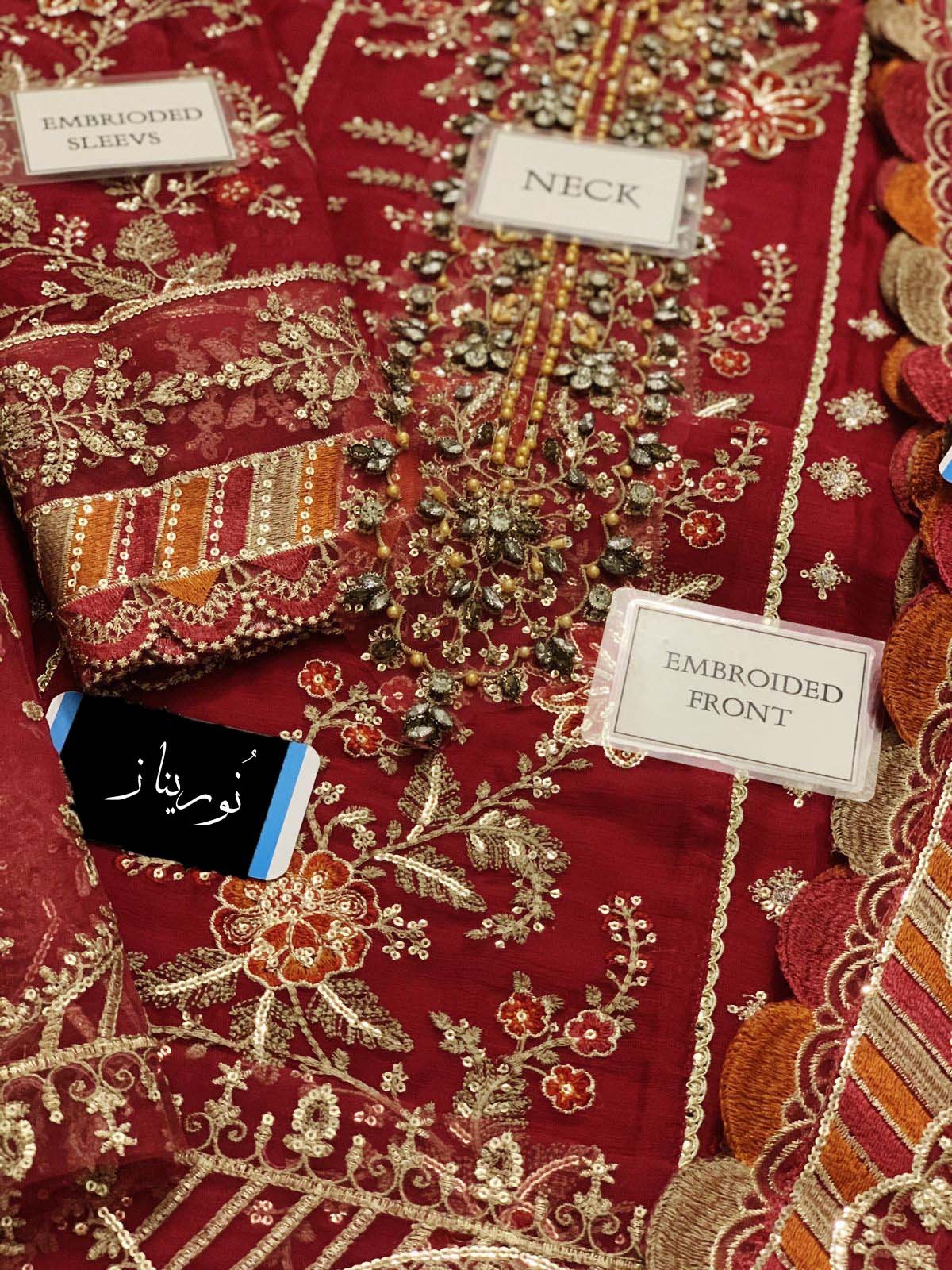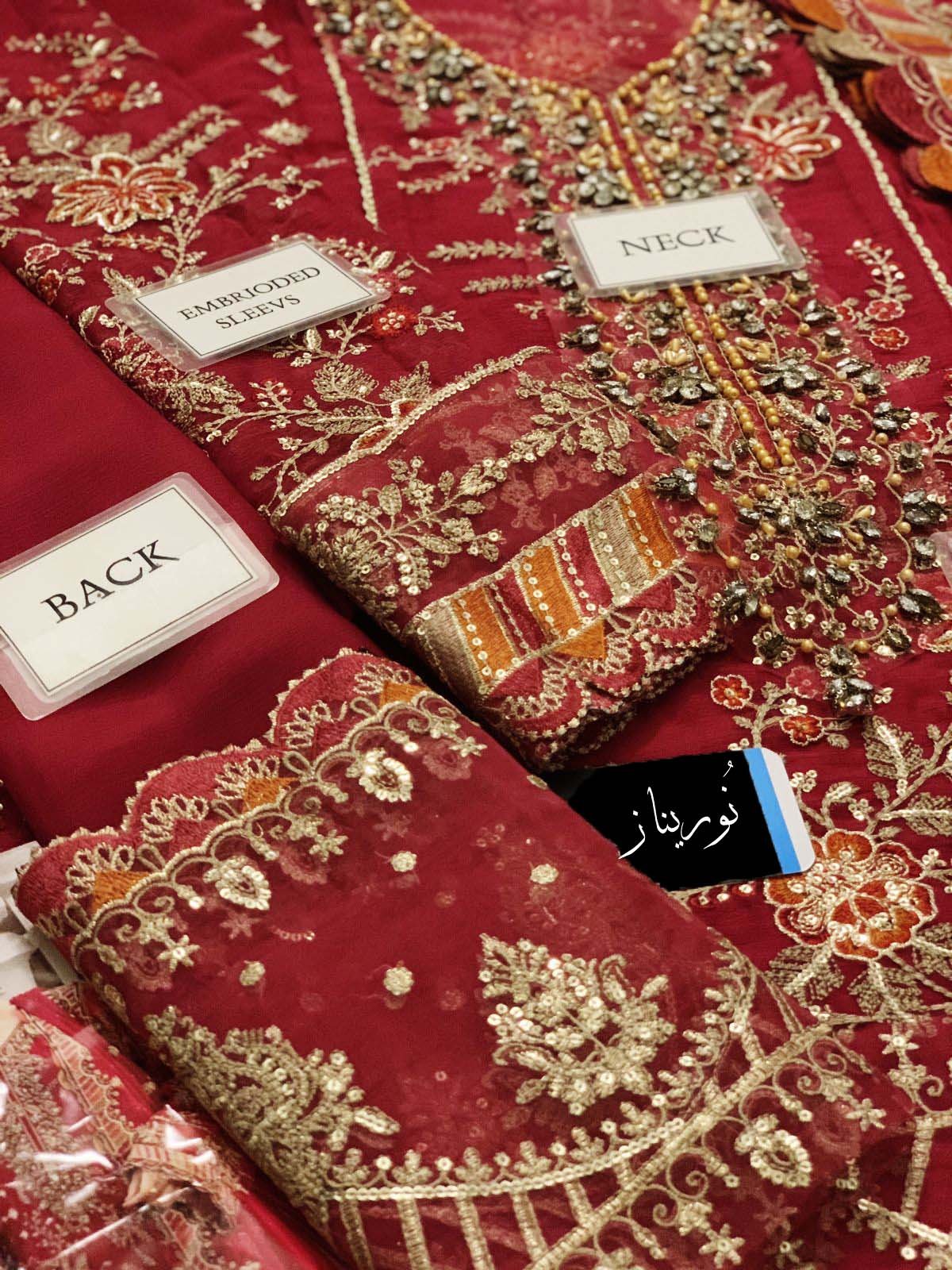 • Semi pure chiffon front with fully heavy embroidered spangle work centre panel