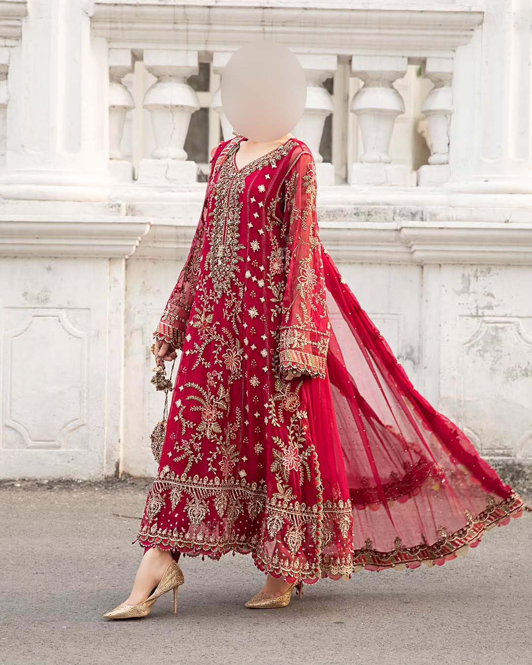 • Heavy embroidered spangle work neckline with rich adda hand embellishment