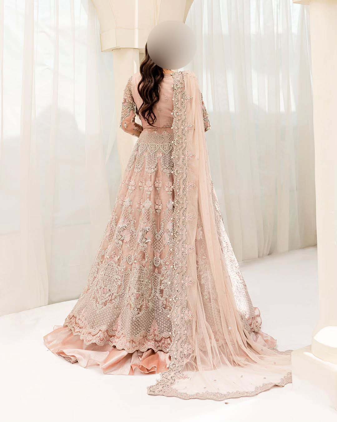 • Full-length maxi front featuring intricate embroidery with 3D floral and pearl embellishments — crafted as per the original pattern