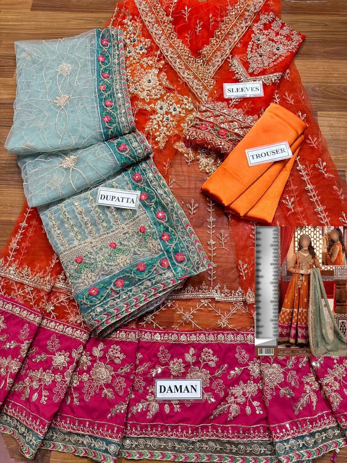 • Embroidered net dupatta with 4-side embroidered border and 2-side heavy embroidered pallu