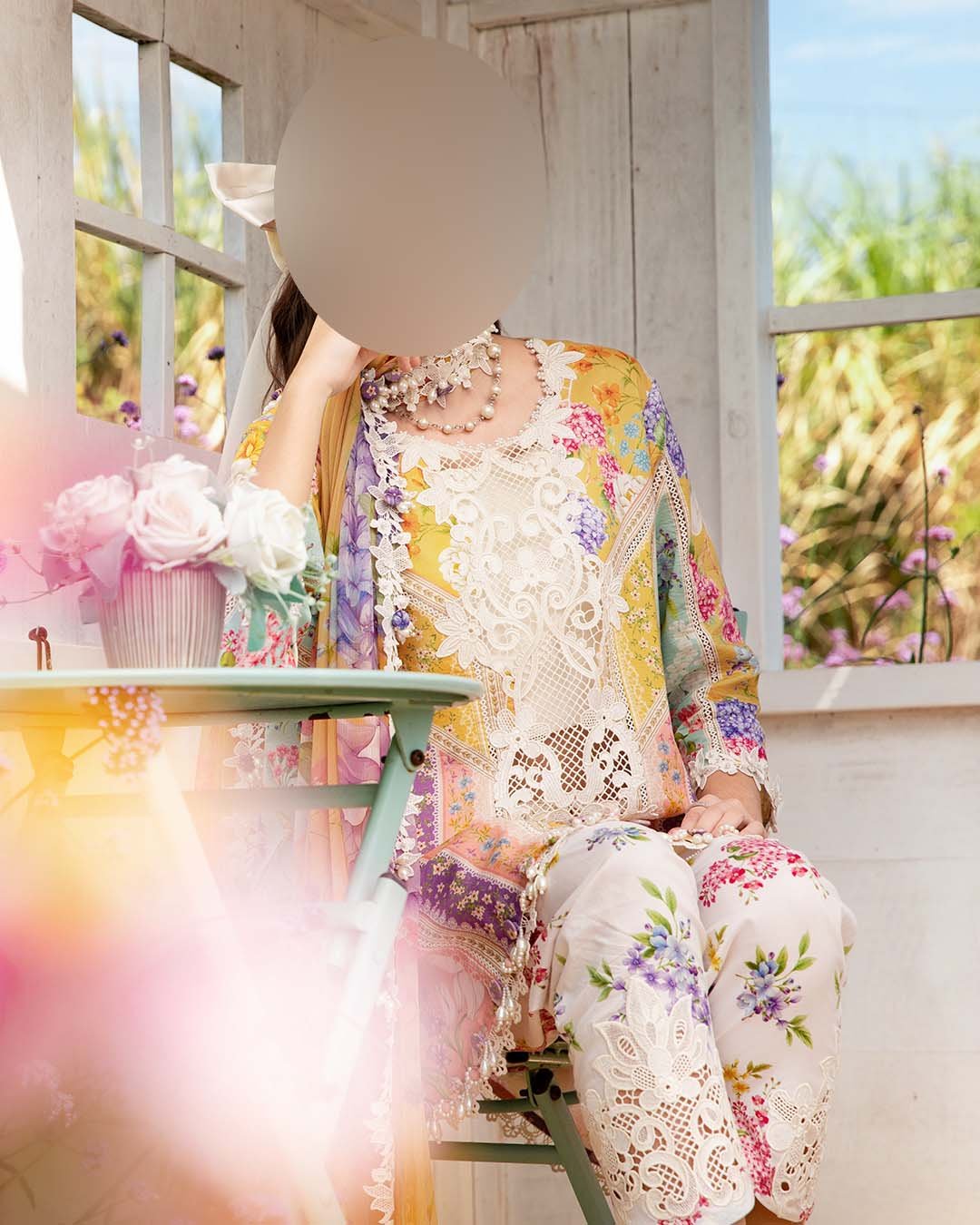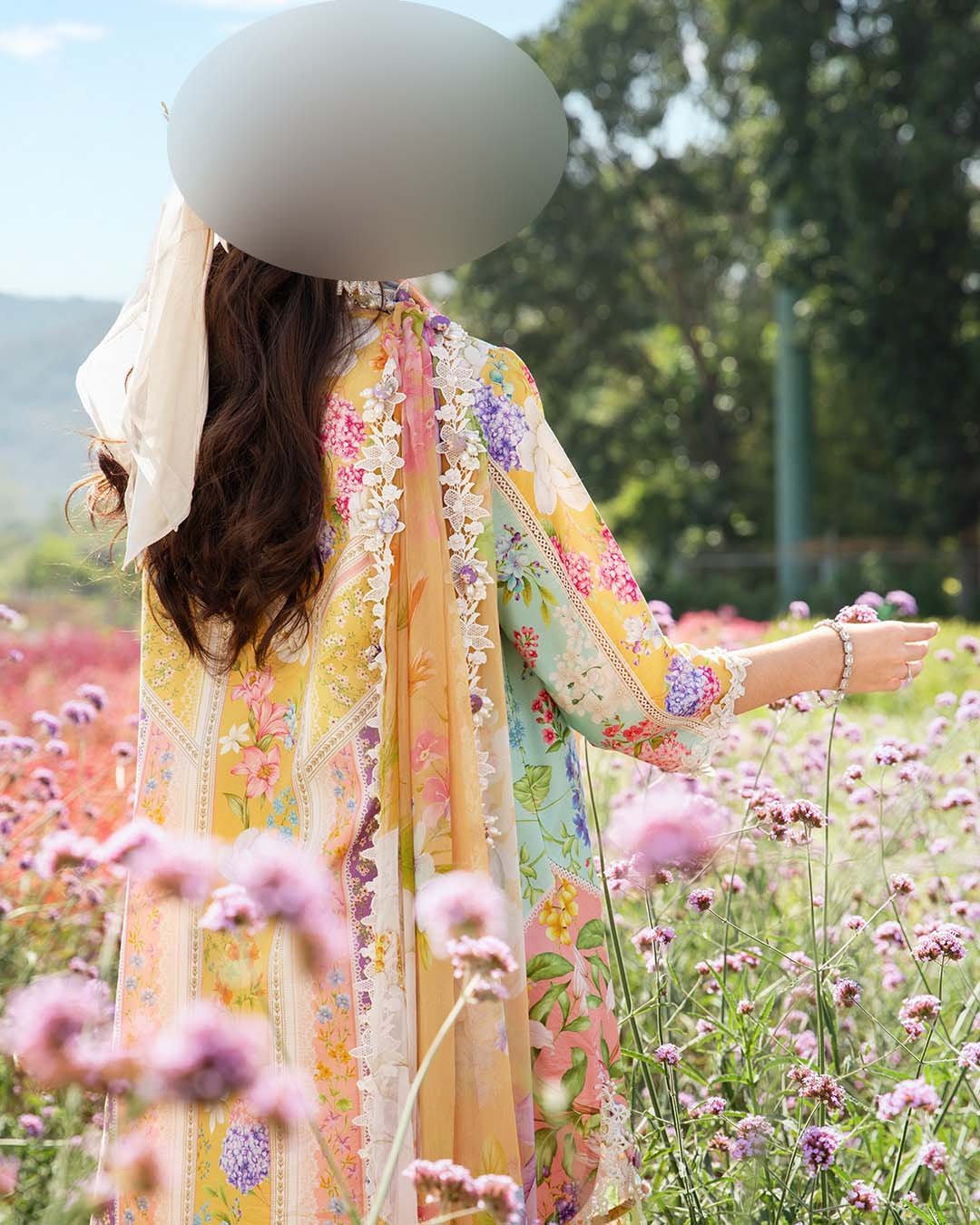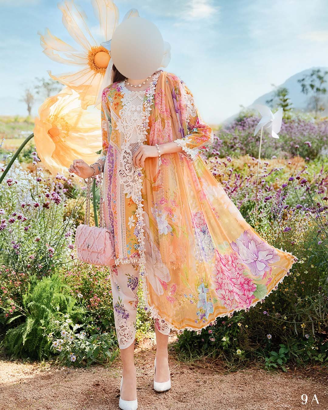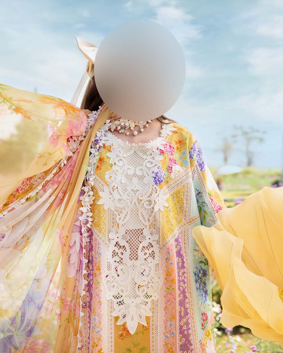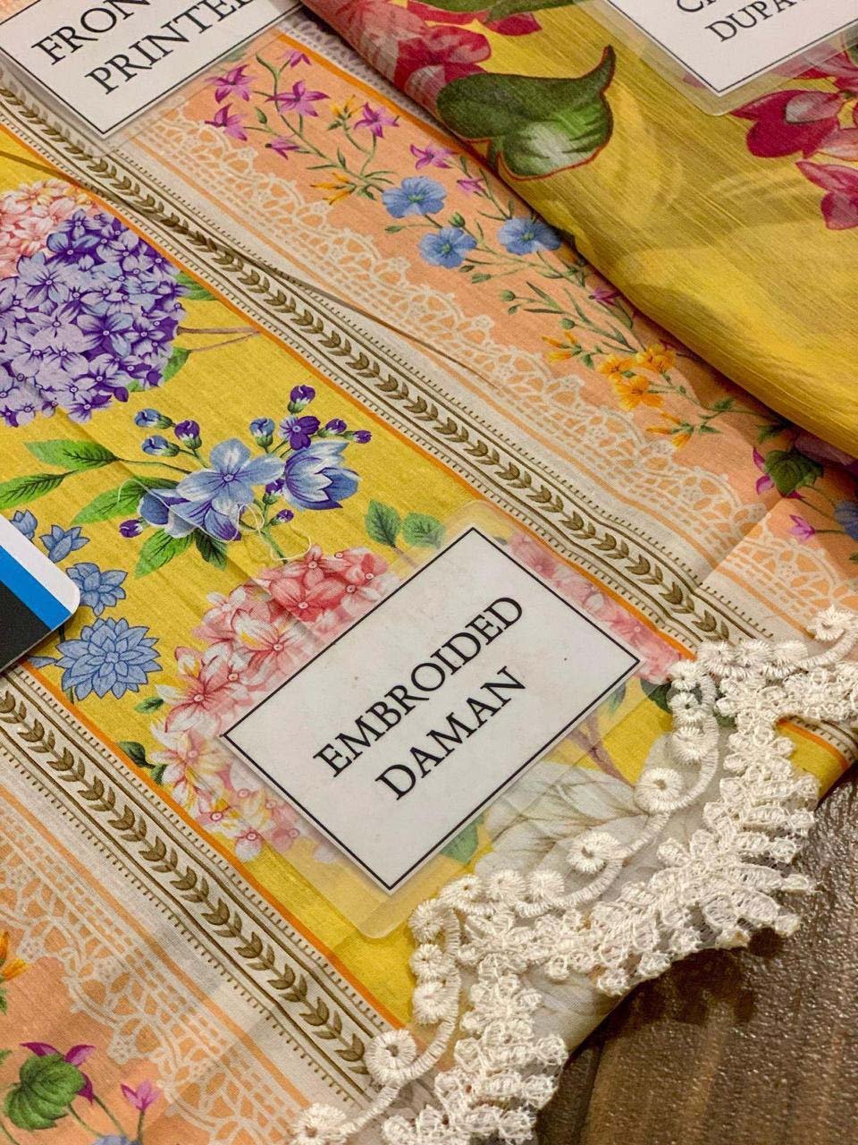 • Digital printed lawn front enhanced with heavy embroidered neckline