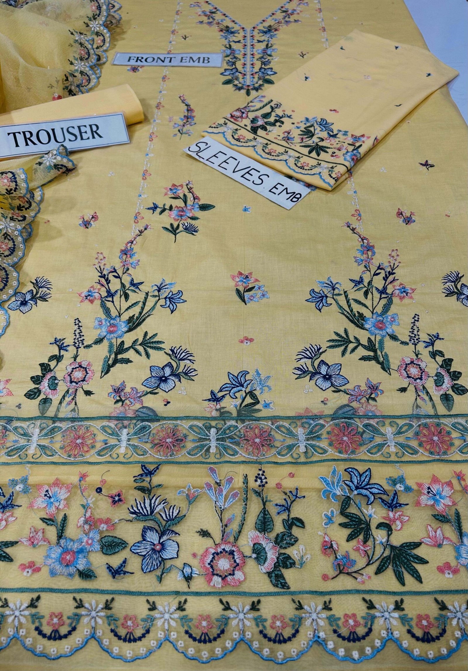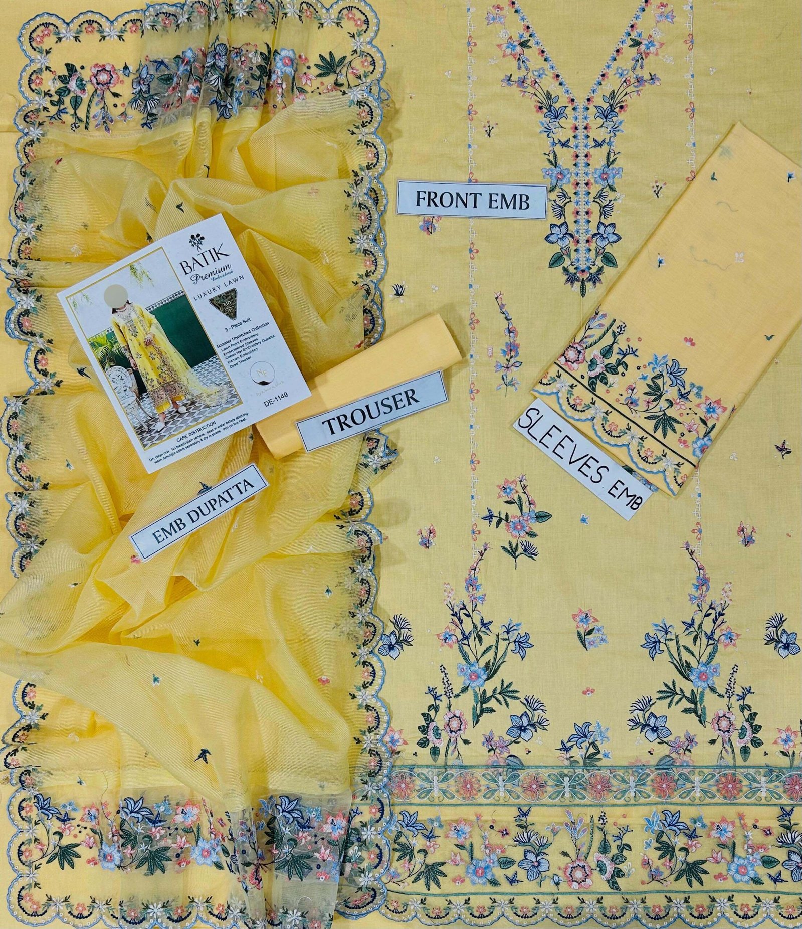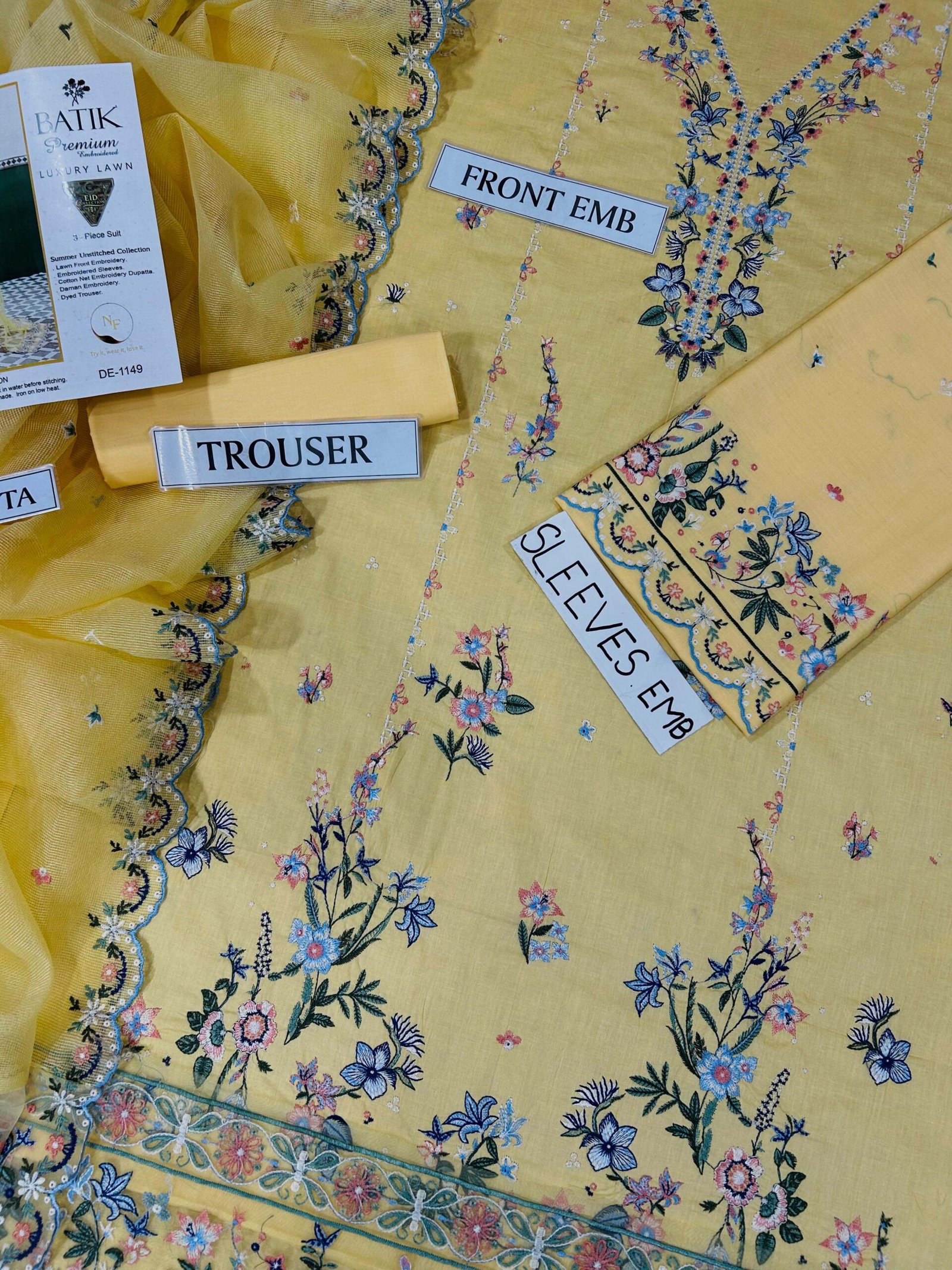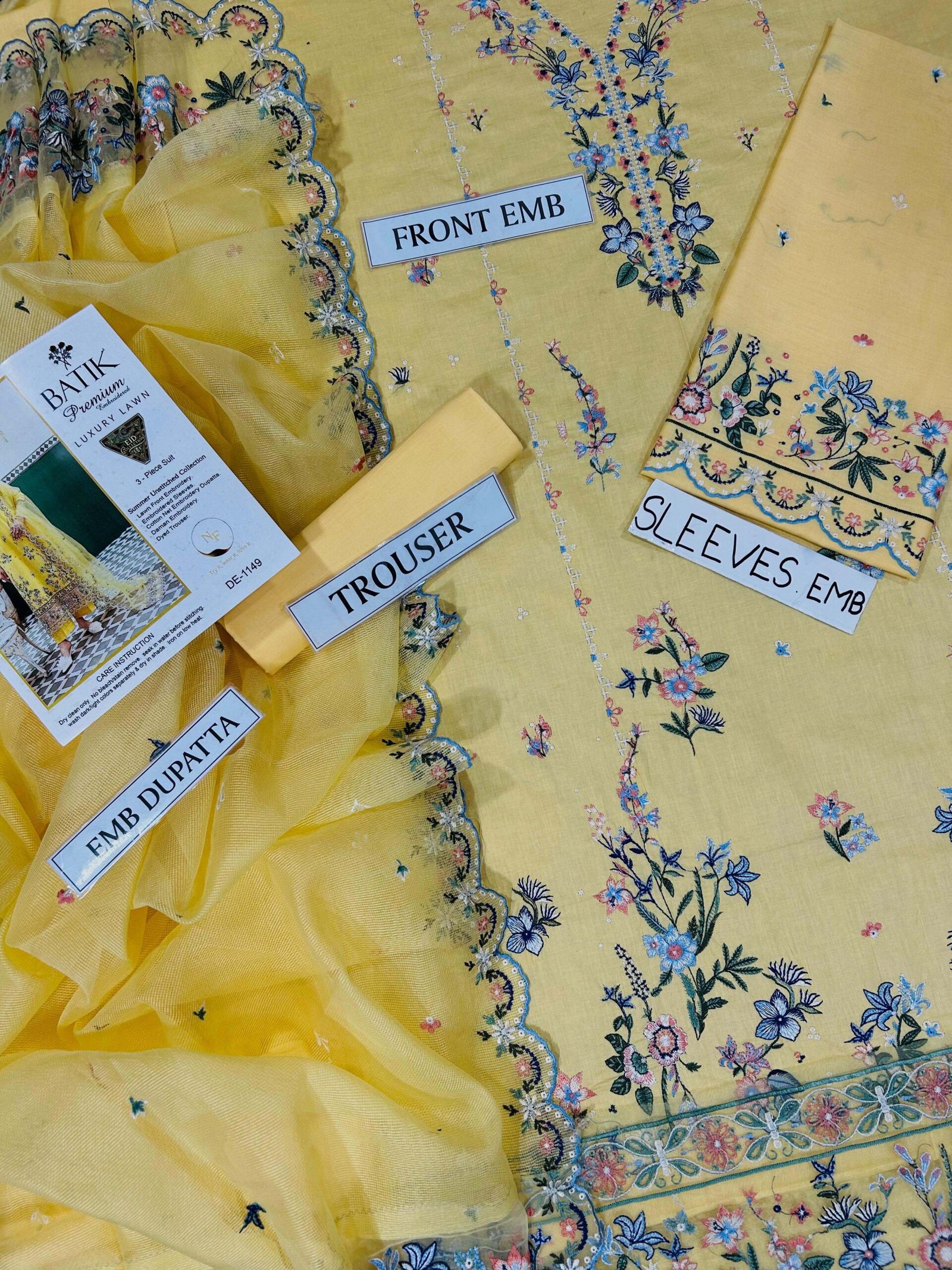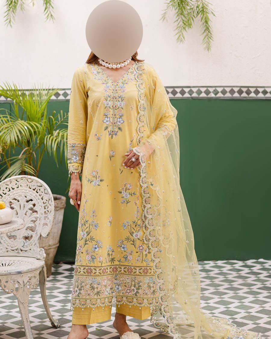 • Unstitched 3-piece suit (Shirt, Dupatta, Trouser)