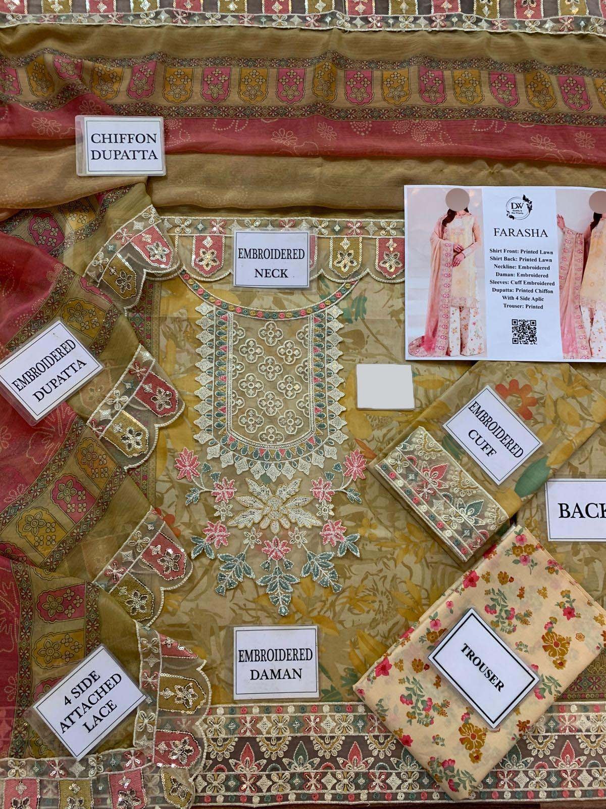 Farasha Premium Lawn 3-Piece with Chiffon Dupatta & Appliqué Embroidery Unstitched SH46