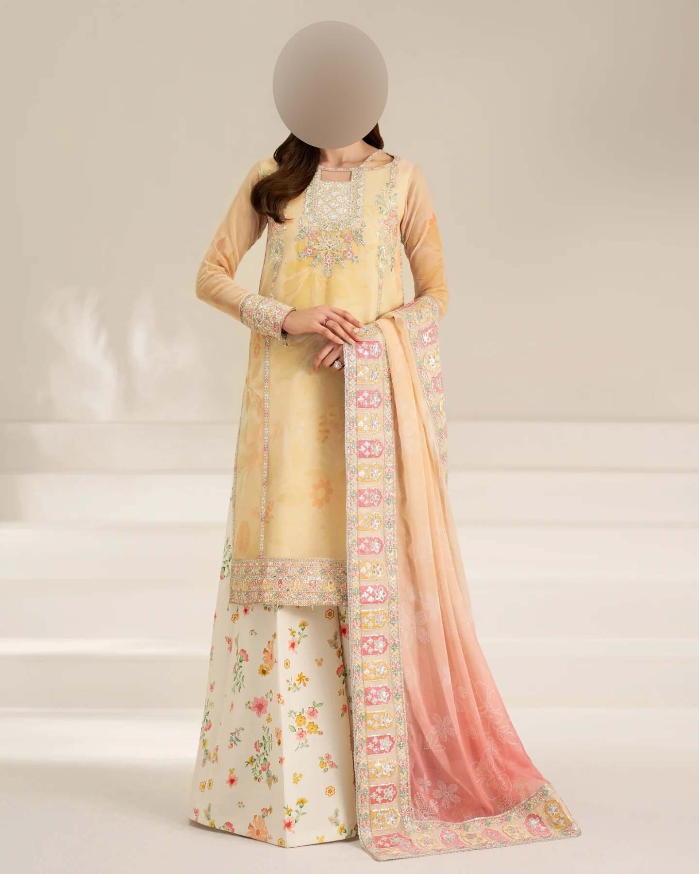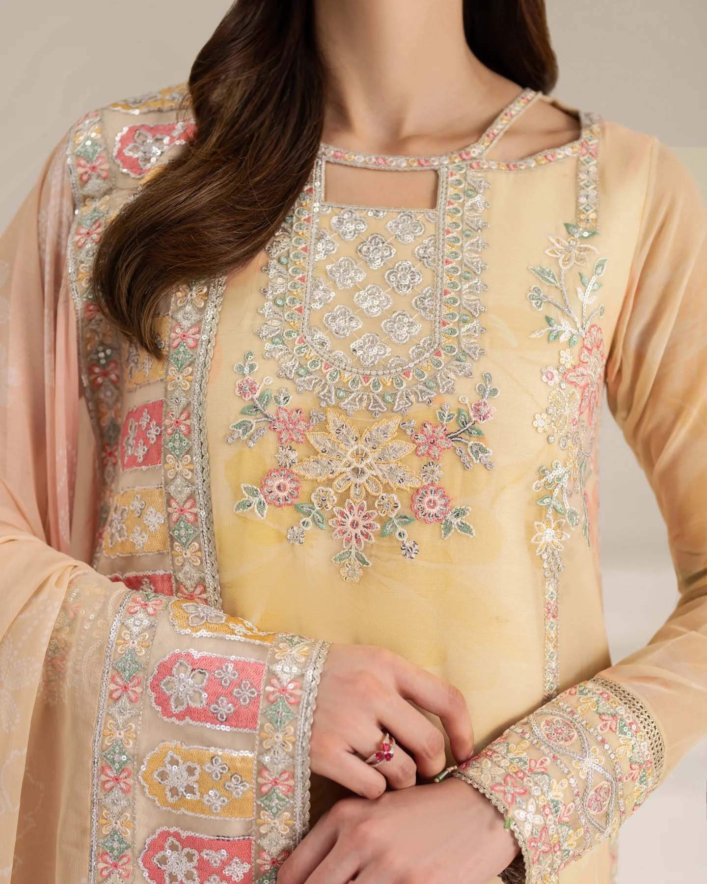 • Unstitched 3-piece suit (Shirt, Dupatta, Trouser)