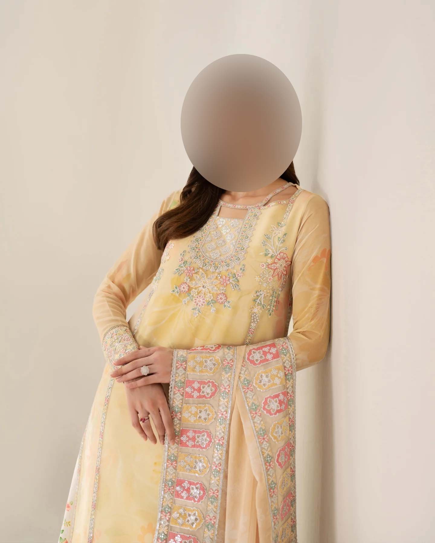 • Premium chiffon dupatta featuring 4-side appliqué work